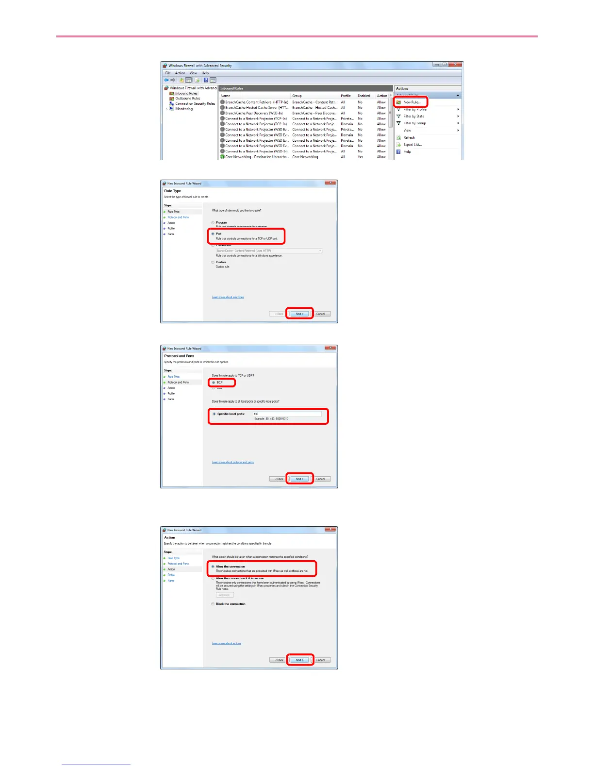 Select Specific local ports, and enter "139".
