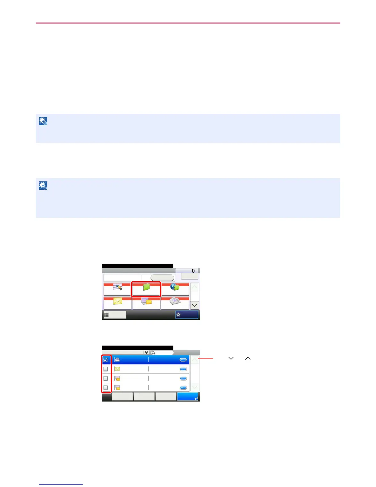 For more information about how to register destinations in the Address Book, refer to Registering Destinations in the