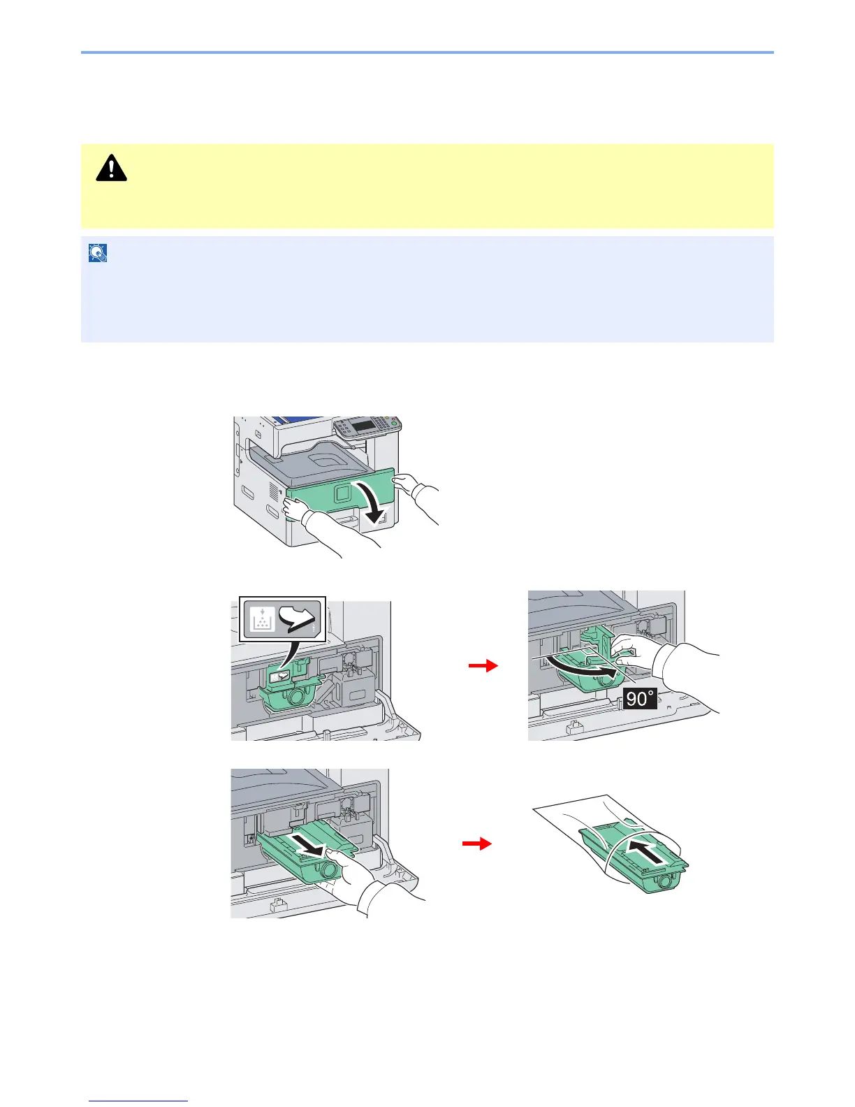 Return the exhausted toner container and waste toner box to your dealer or service representative. The collected