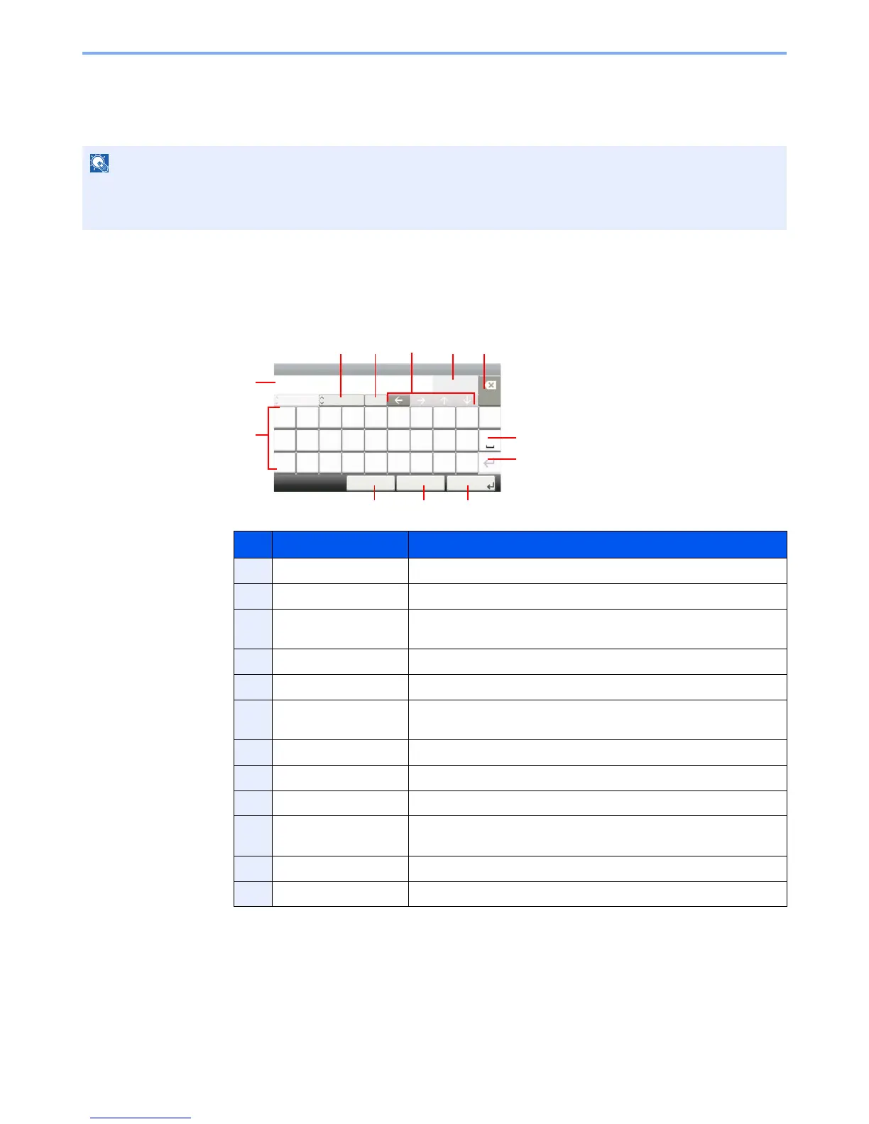 To enter characters for a name, use the on-display keyboard in the touch panel following the steps as explained below.
