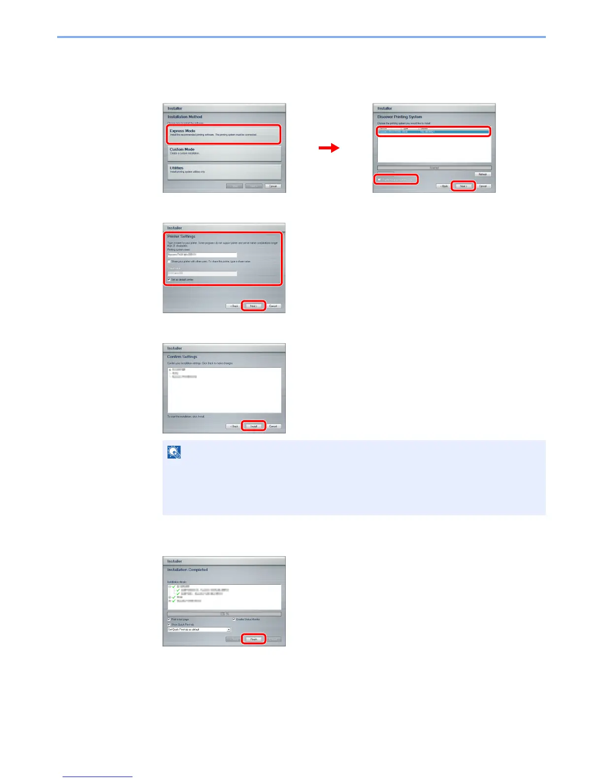 1 Select the print system to be installed. If the machine is set to acquire an IP address