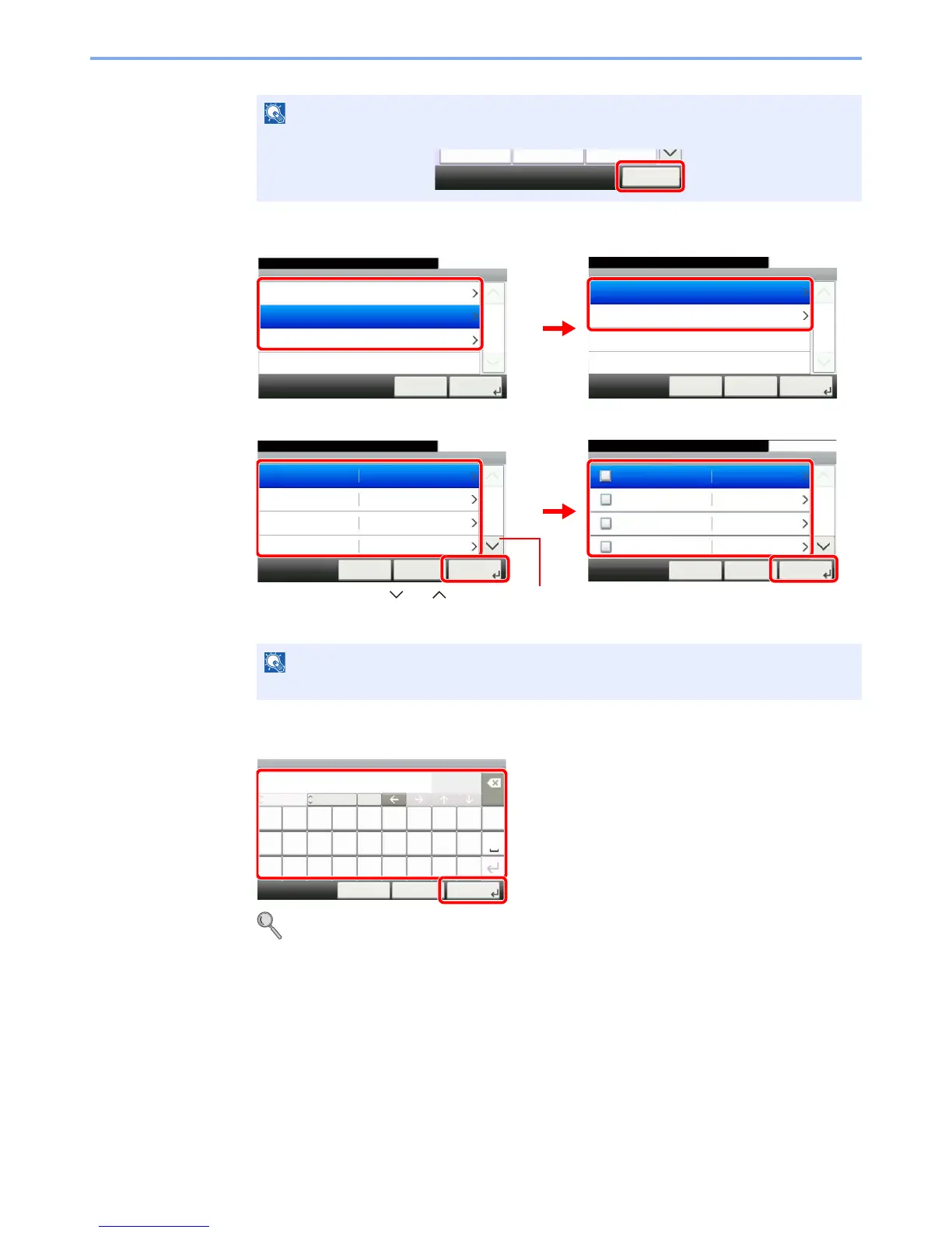 When the job type is Copy, the Destination Recall Method screen will not be displayed.