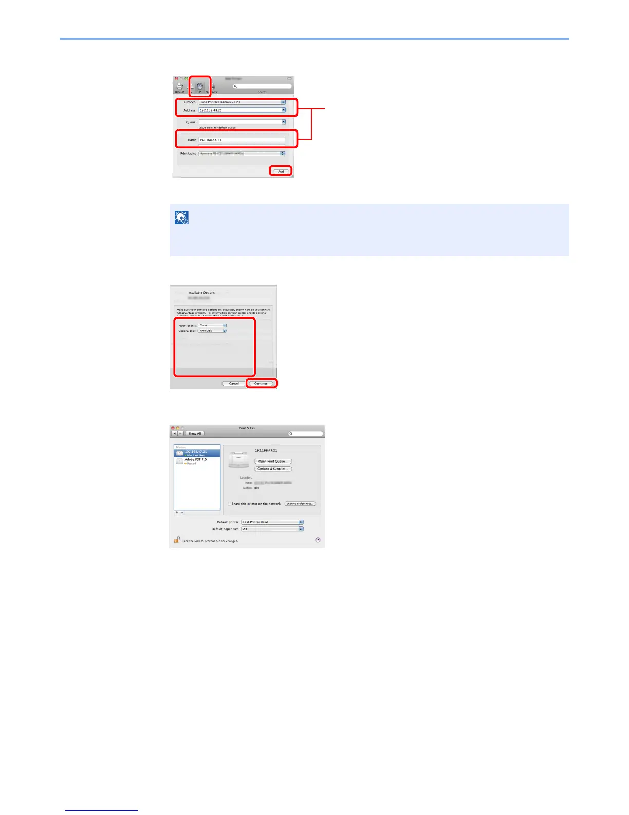 2 Click the IP icon for an IP connection and then enter the IP address and printer name.