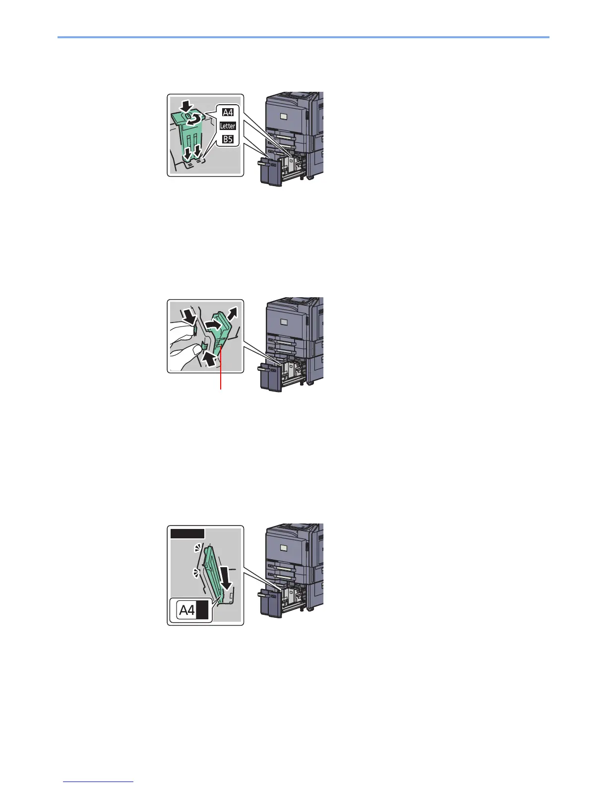 4 Adjust the Paper Size Guide (B) to the paper size.