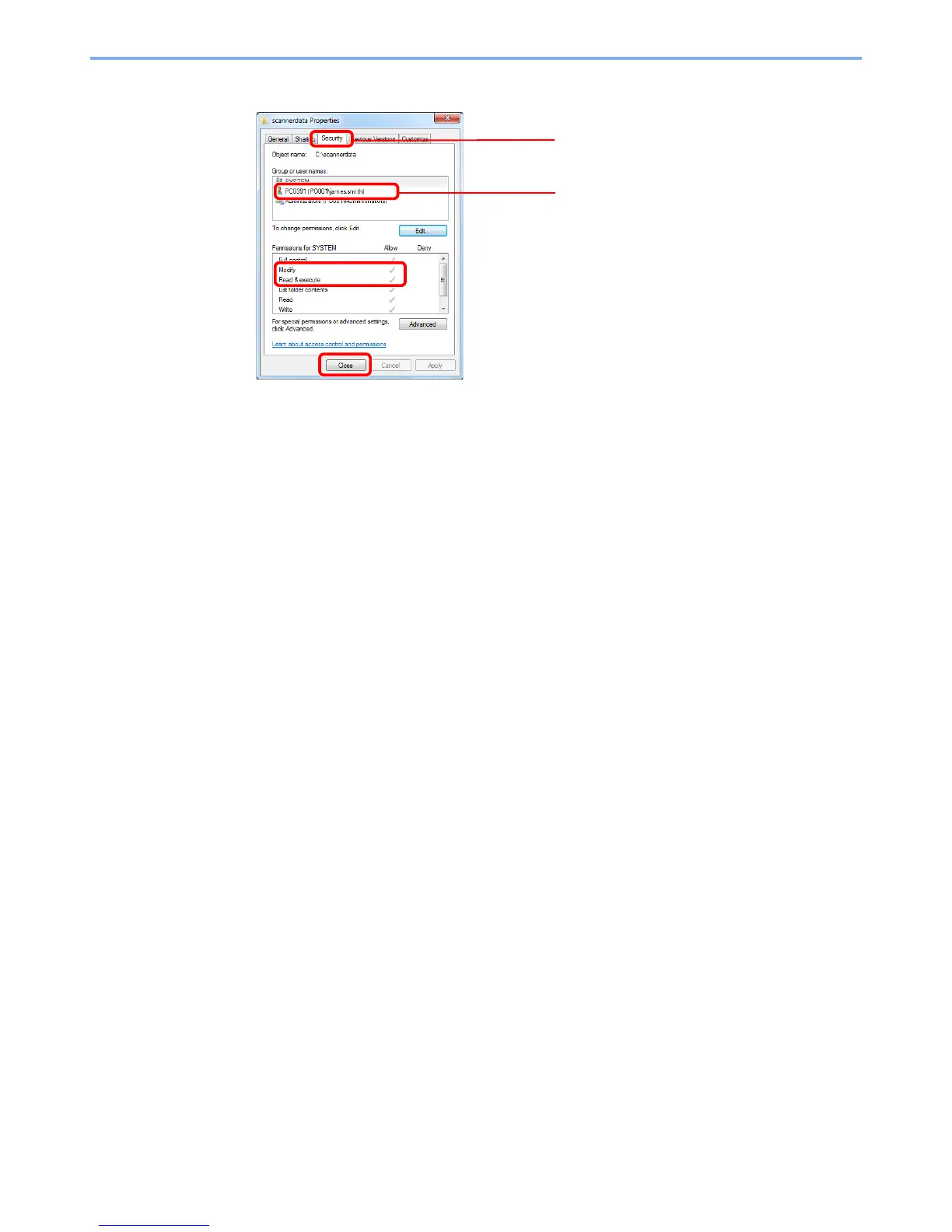 In Windows XP, make sure that checkmarks appear on [Allow] checkbox for the "Modify" and