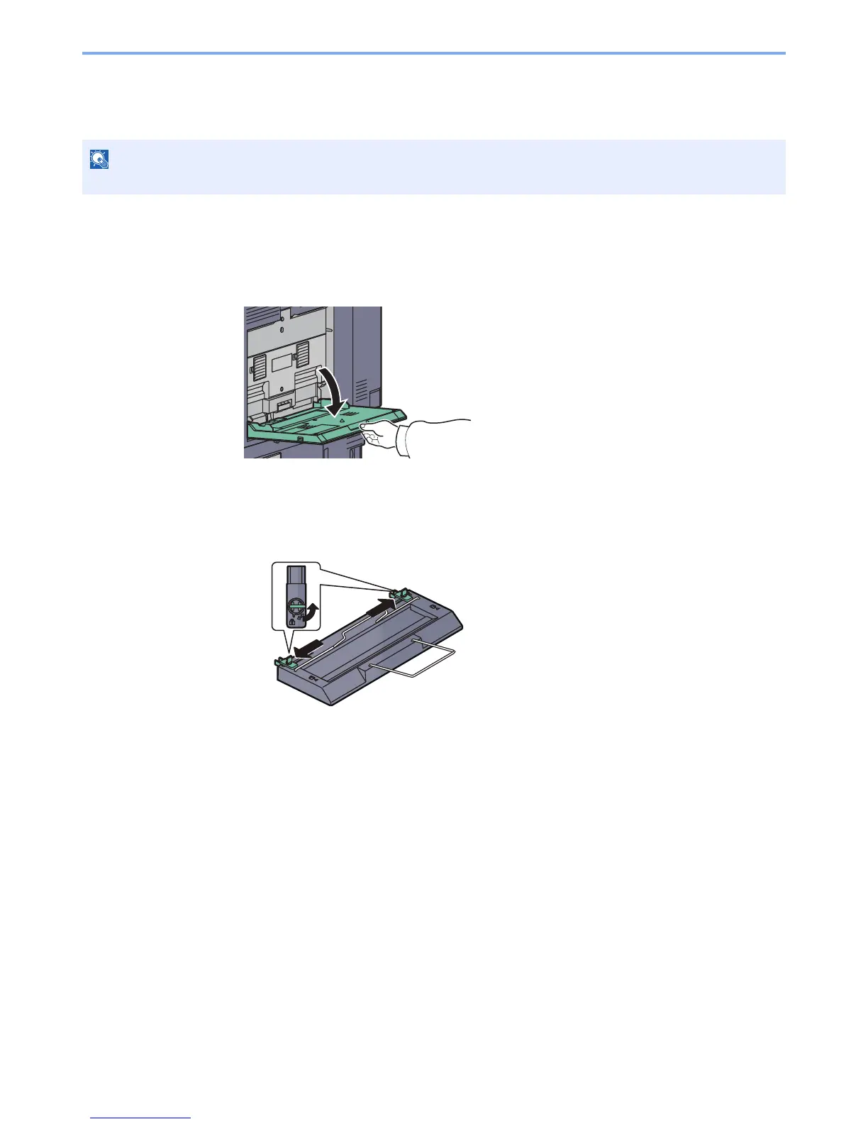 1 Release the paper width guide lock on the banner tray and open to the maximum width.