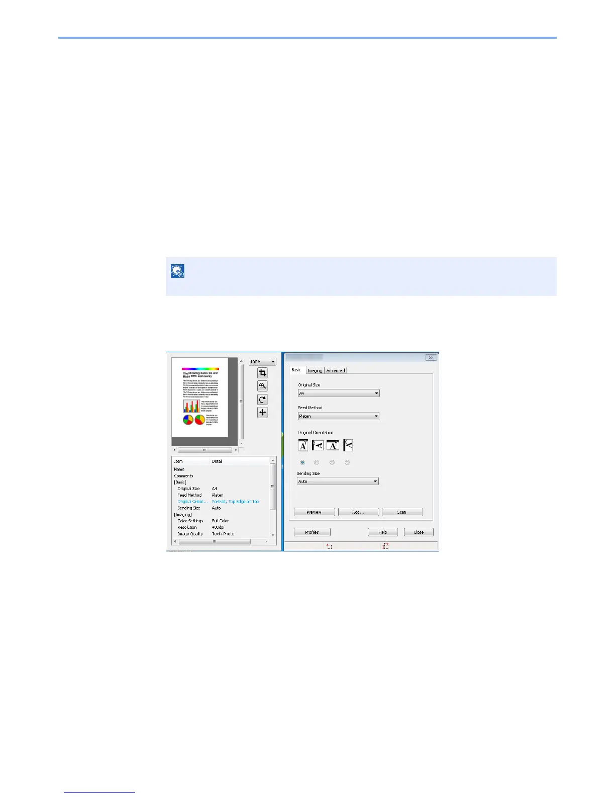 This section explains how to scan an original using TWAIN. The machine's TWAIN/WIA can be used for two types of