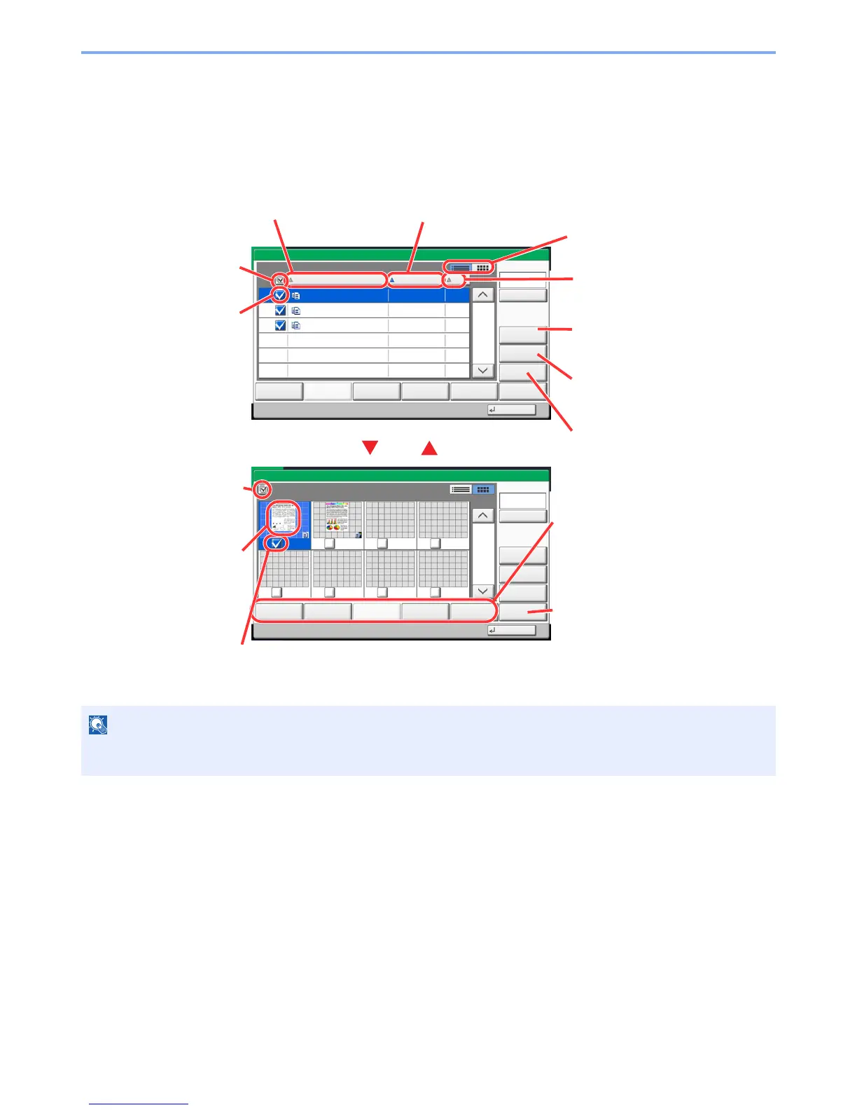 The document list is a list of the documents stored in the custom box. Documents can be listed either by name or as