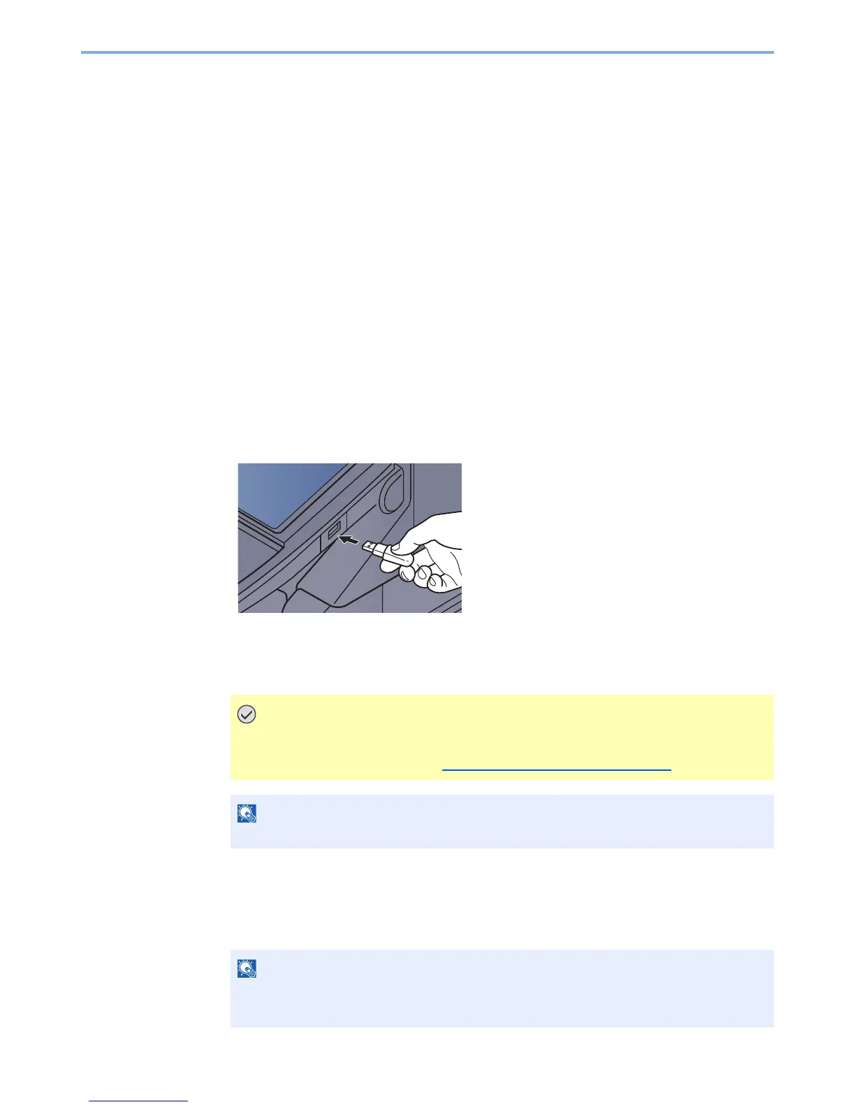 Plugging USB memory directly into the machine enables you to quickly and easily print the files stored in the USB
