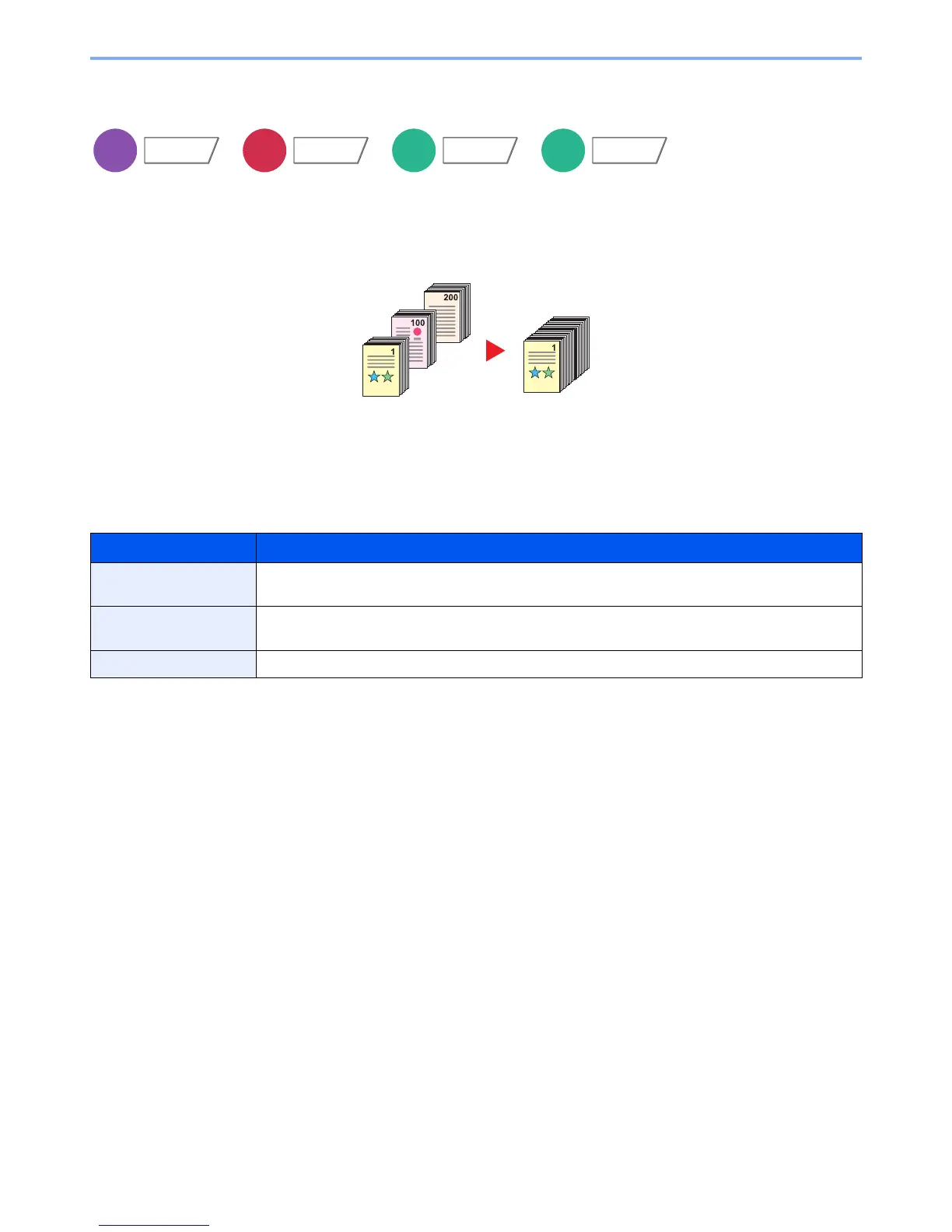 Scans a large number of originals in separate batches and then produce as one job. Originals will be scanned