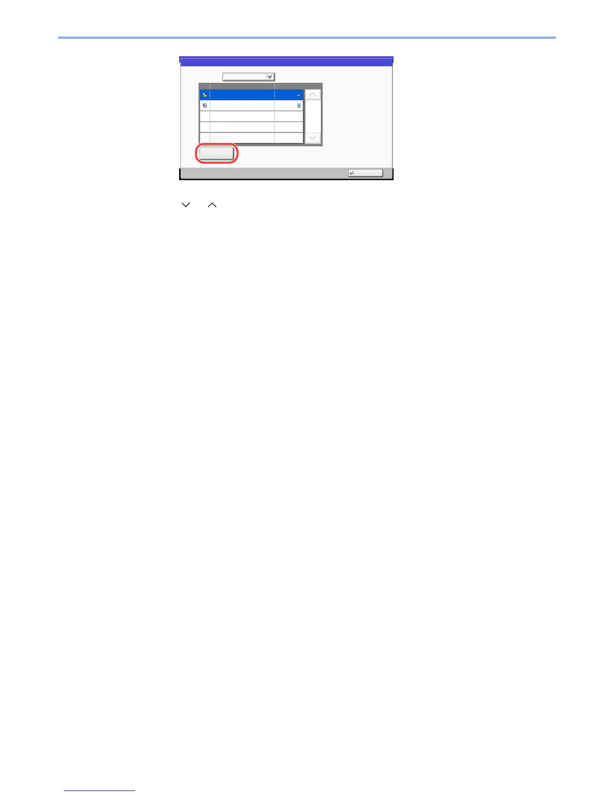 [ ] or [ ], select a destination and press [Detail]. Information on the selected job is displayed for