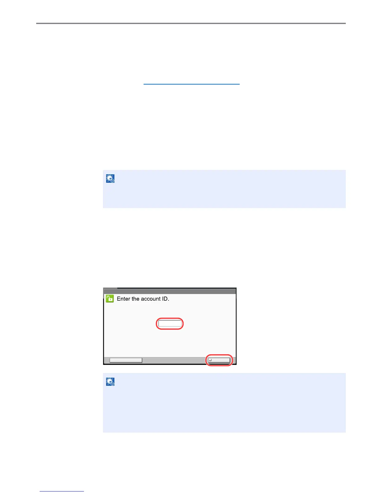 If job accounting is enabled, an account ID entry screen appears each time you use this machine.