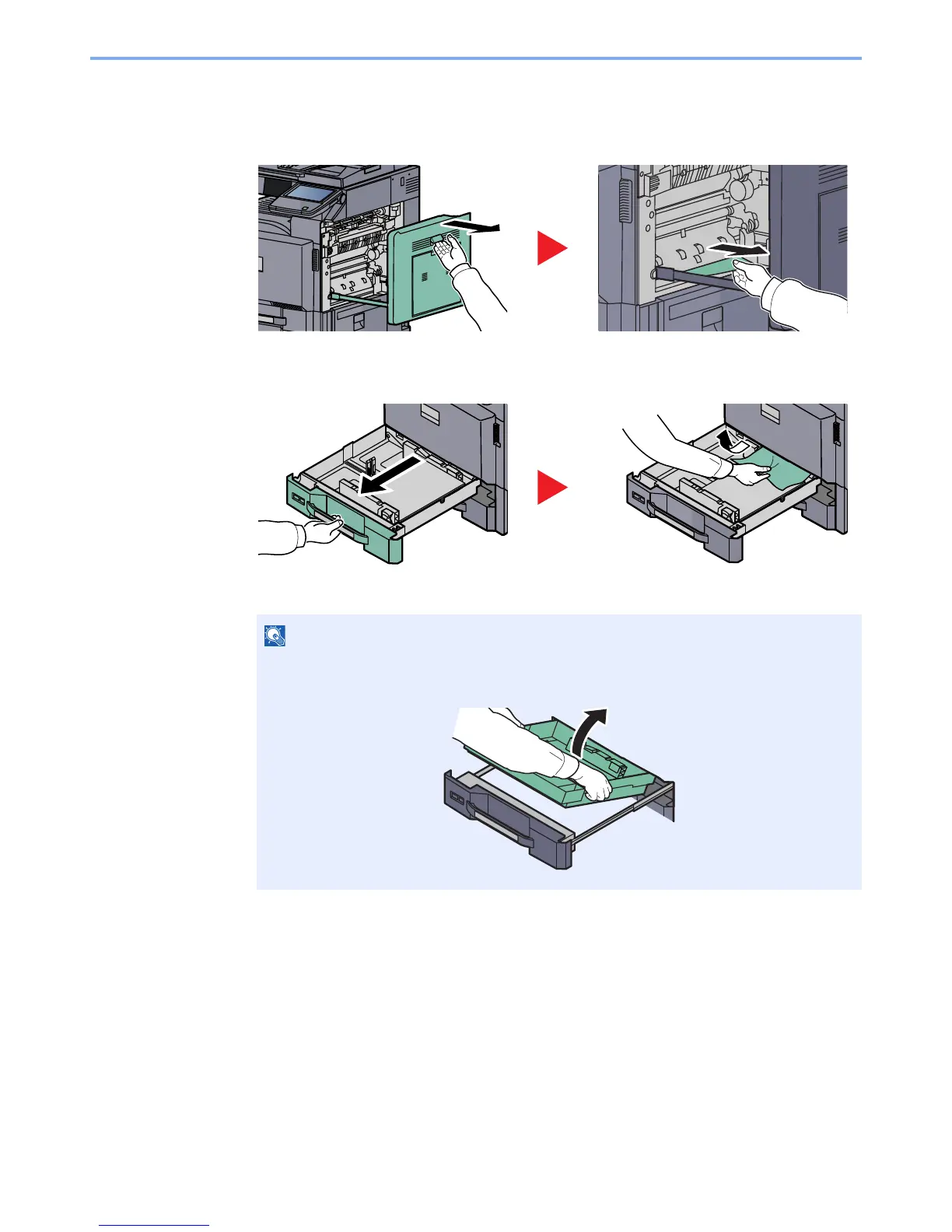 To remove paper which is difficult to get access to, the inner part of the cassette can be