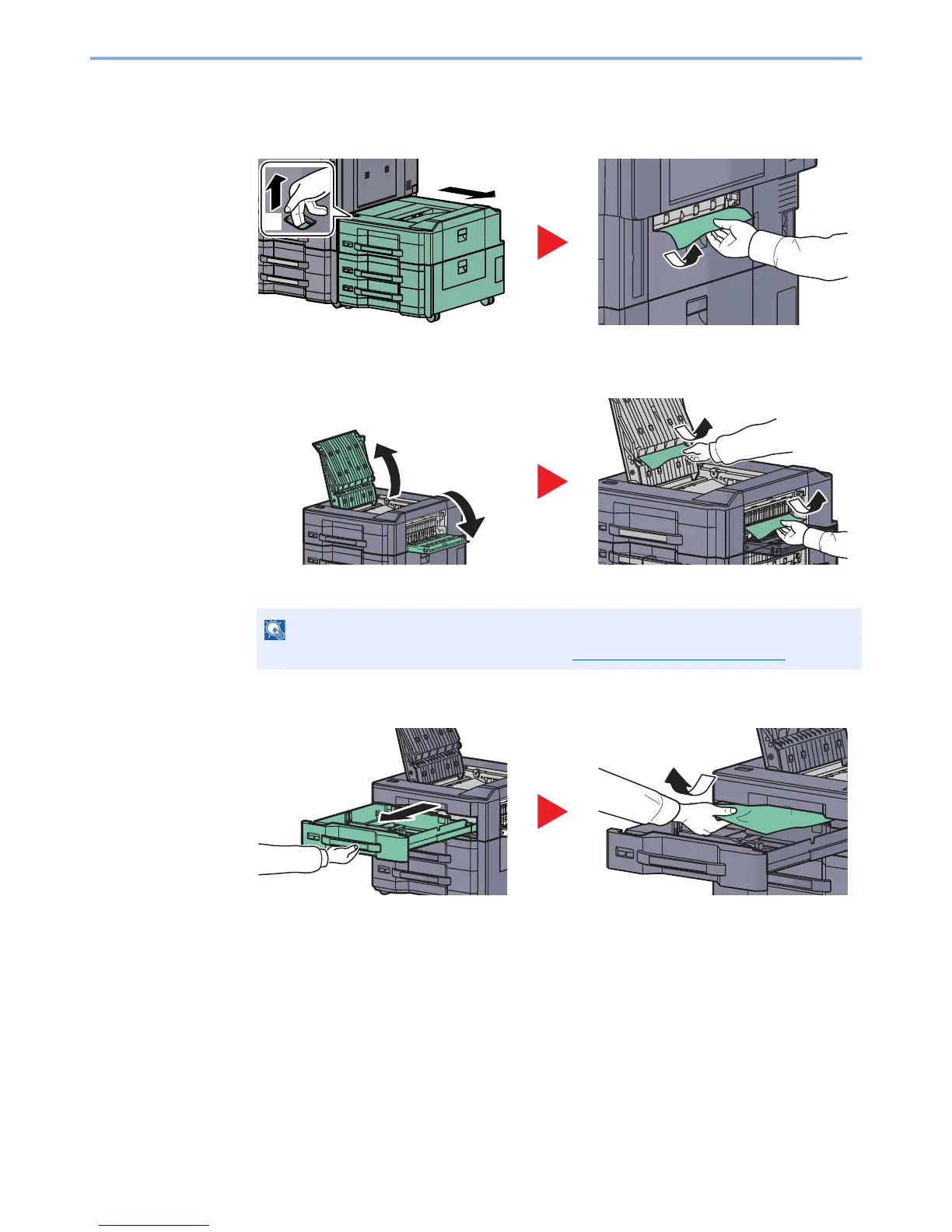 When a paper jam occurs in Cassette 6 or 7, refer to Cassette 6,7 (Option) on page 10-69