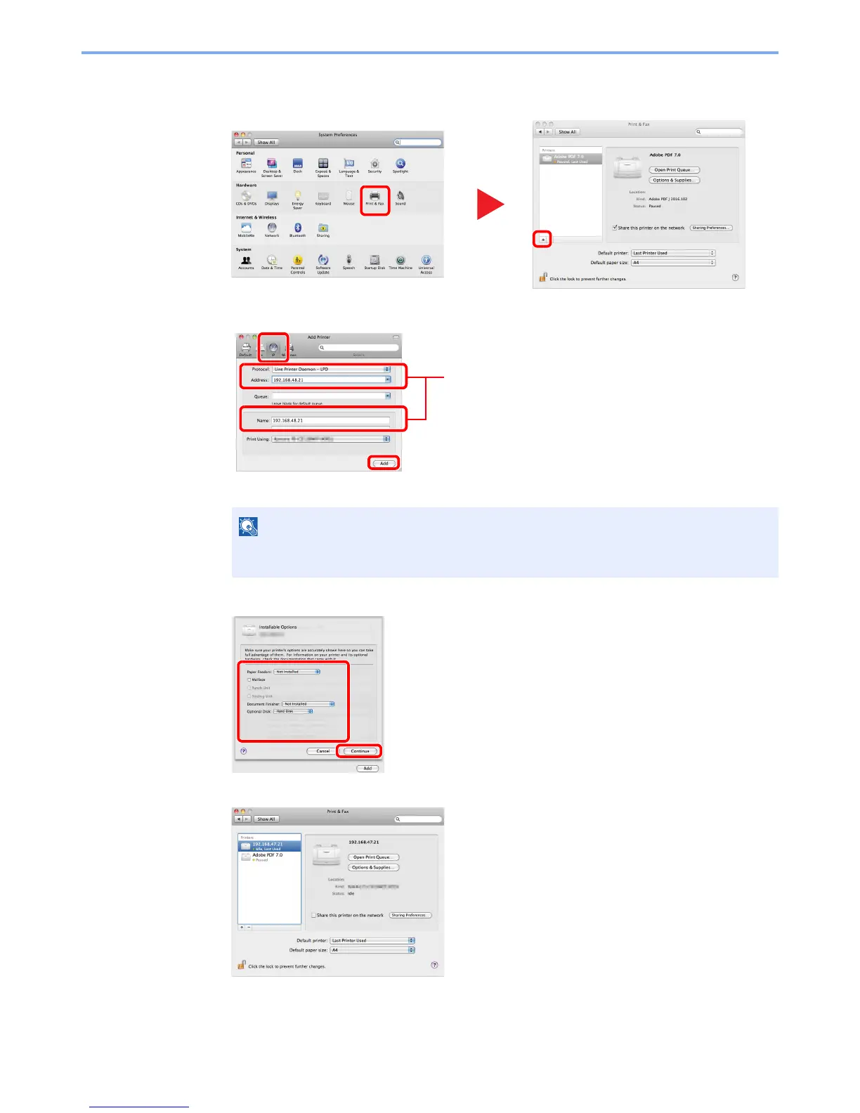 2 Click the IP icon for an IP connection and then enter the IP address and printer name.