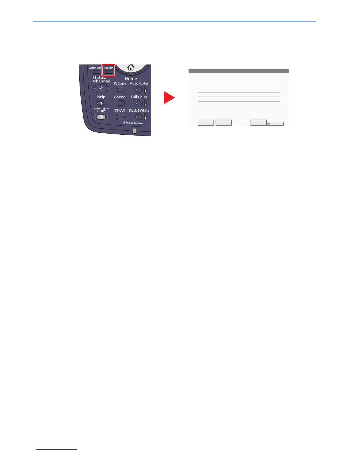 Press the [Counter] key to check the number of sheets printed and scanned.
