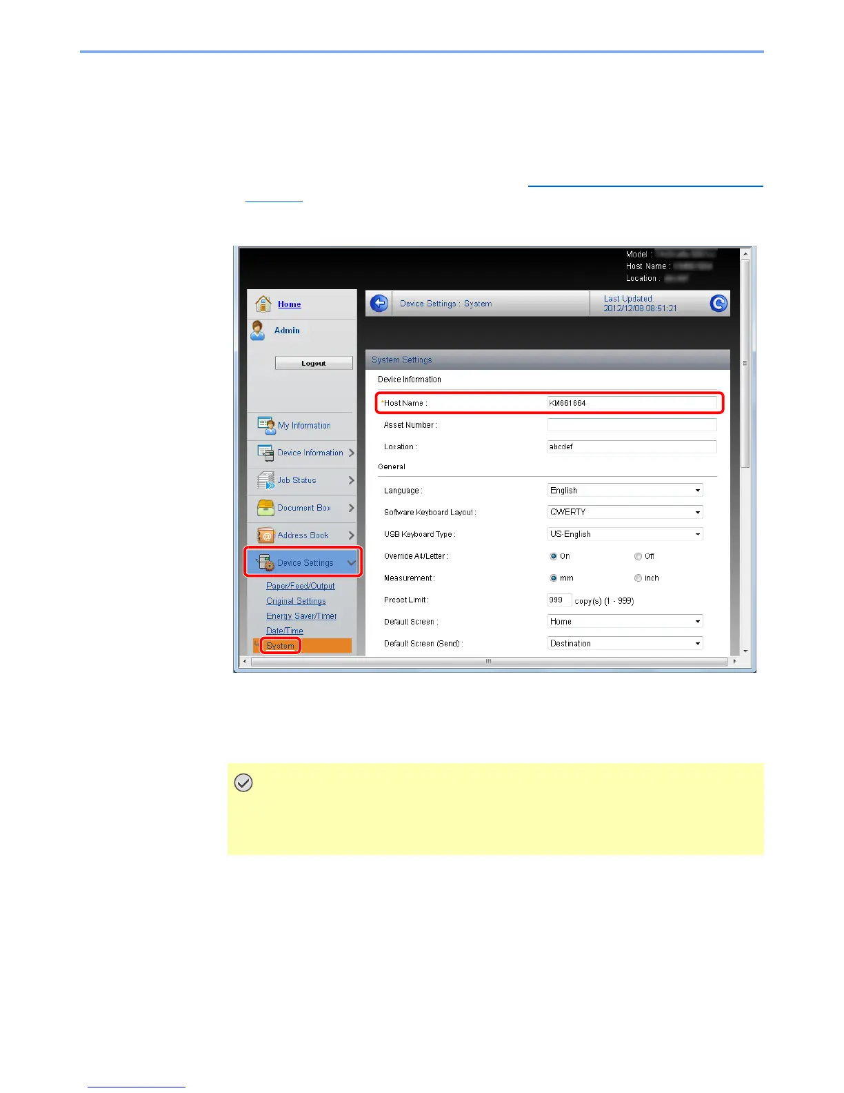 Under "Device Settings", enter the host name in "Host Name", and then click [Submit].