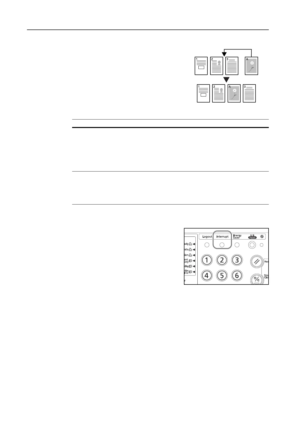 After the interrupt copying is complete, press the Interrupt key. The settings for the interrupted job