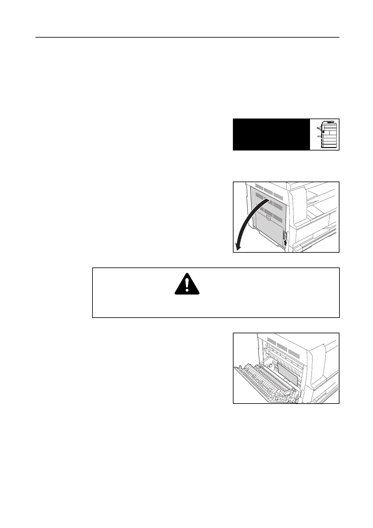 The fixing unit is extremely hot. Take sufficient care when working in this area, as there