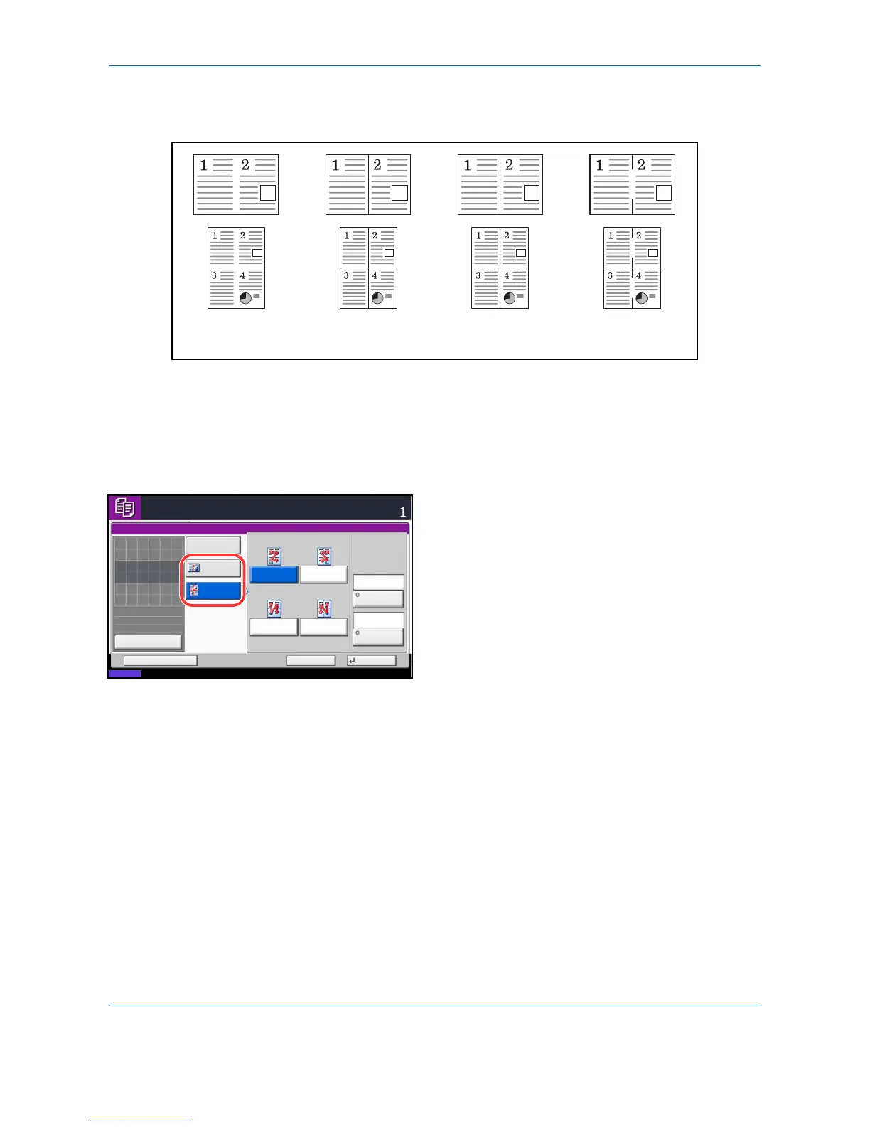 4 Press [2 in 1] or [4 in 1], and choose the page layout