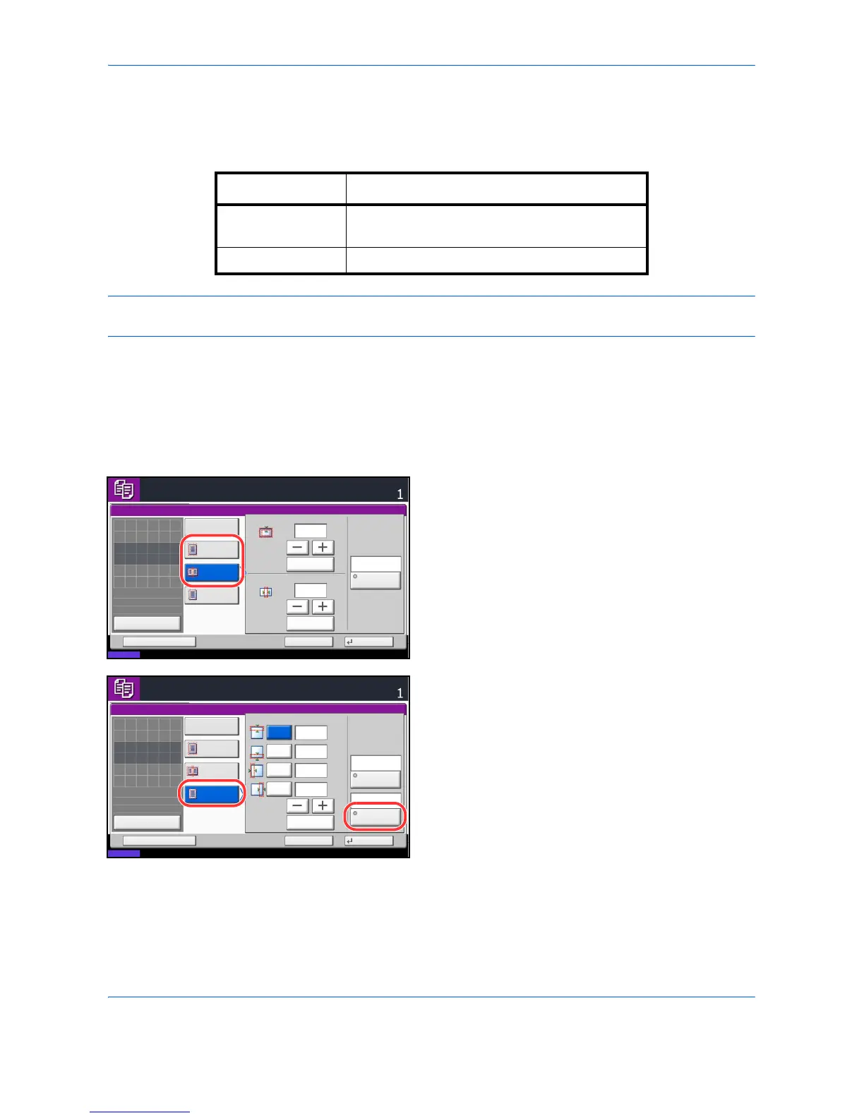 Use [+] or [–] to enter the width in Top, Bottom, Left