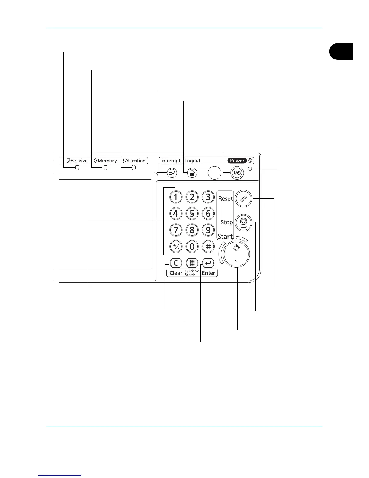 Blinks while the machine is accessing the hard disk, fax memory or USB memory