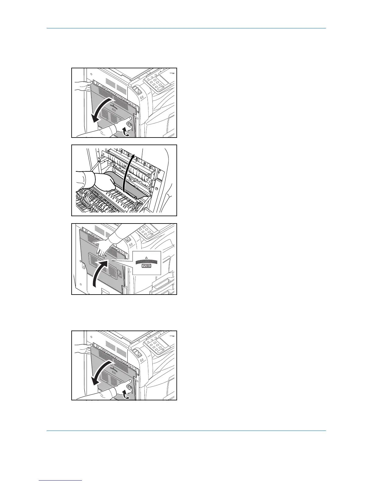Follow the steps below to clear paper jams inside left cover 1, 3 or 4 when using the optional paper feeder.