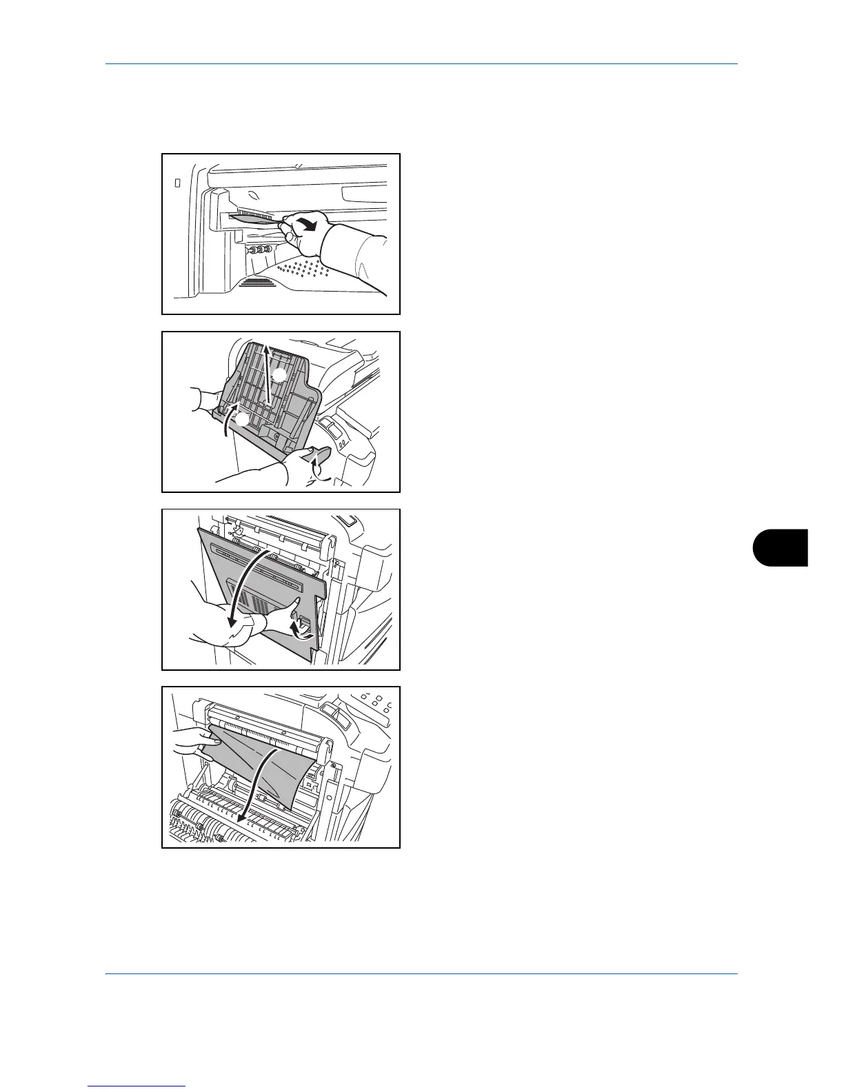 Follow the steps below to clear paper jams in the optional built-in finisher.