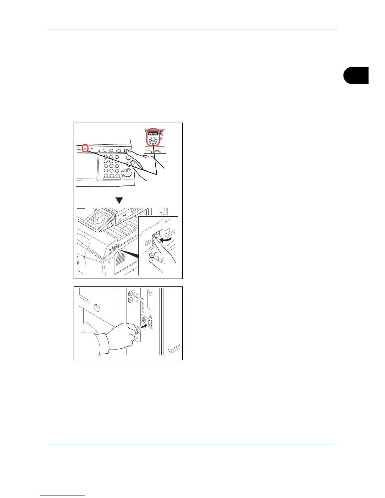 Follow the steps below to connect a LAN cable to the machine.