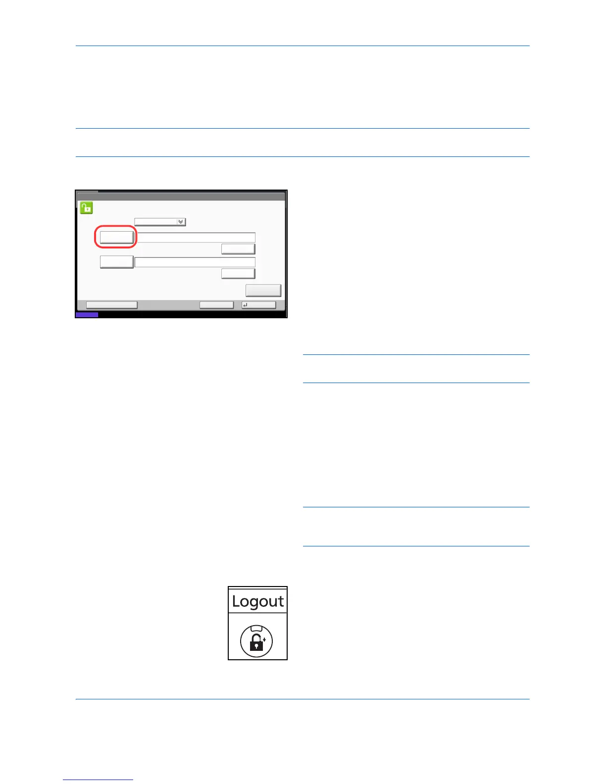 To logout from the machine, press the Logout key to