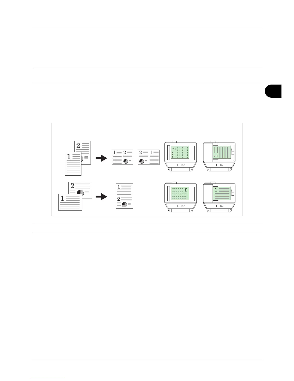 For copying two originals onto a single sheet. This mode can be used with Duplex mode to copy four originals onto