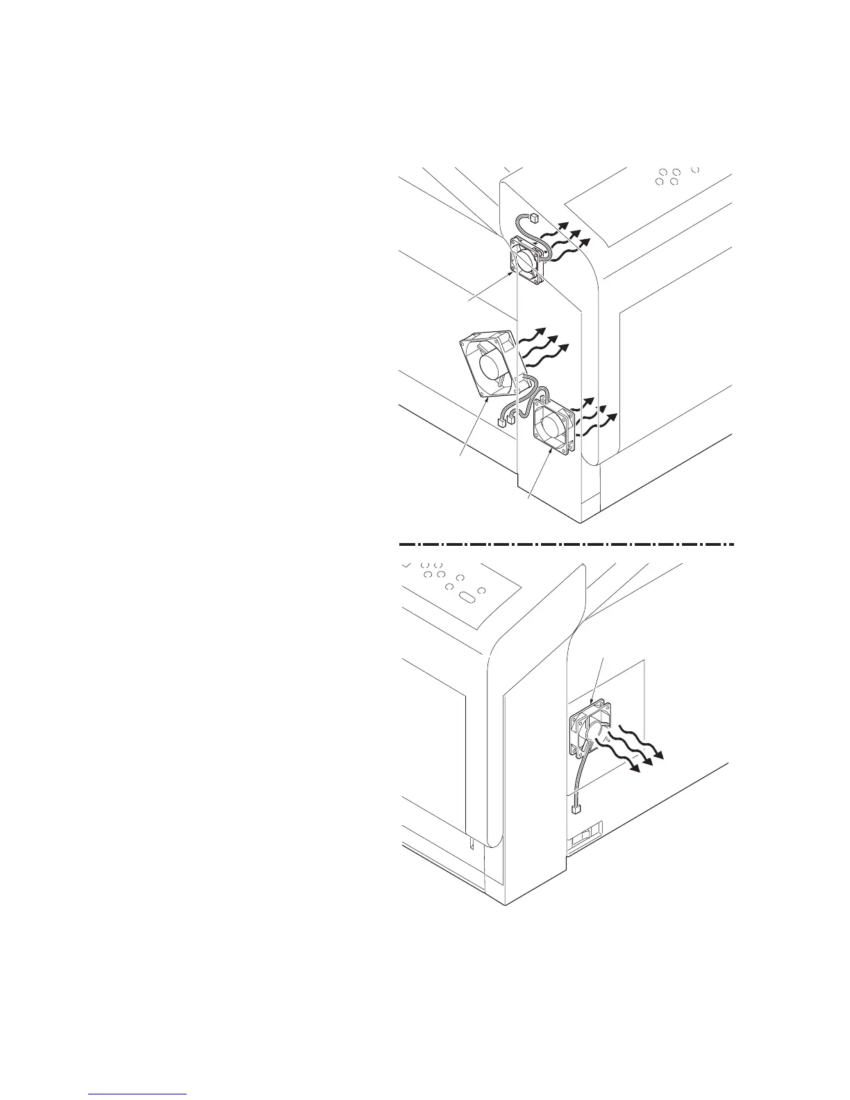 When detaching or refitting the developing fan motor 1, developing fan motor 2, fuser fan motor 1 or ozone fan motor, be