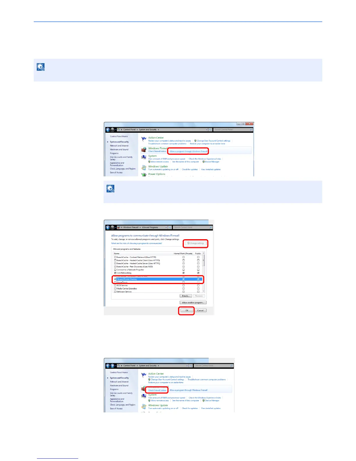 1 From [Start] button on the Windows, select [Control Panel], [System and Security], and