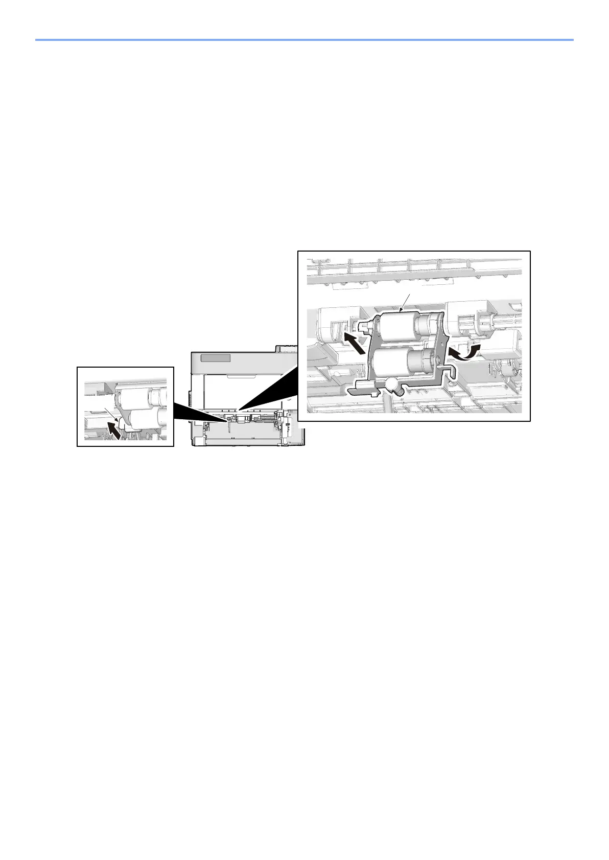 4 Check or replace the paper feed roller and refit all the removed parts.