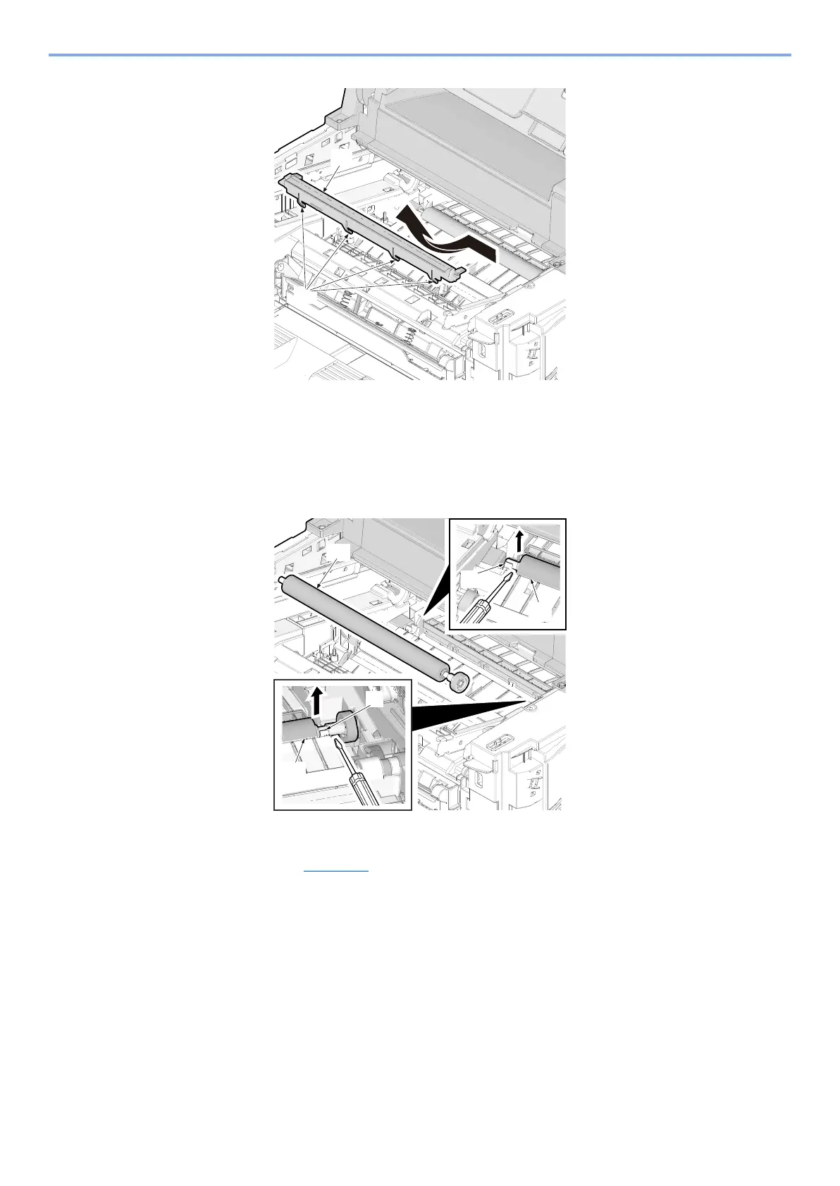 3 Check or replace the transfer roller assembly and refit all the removed parts.