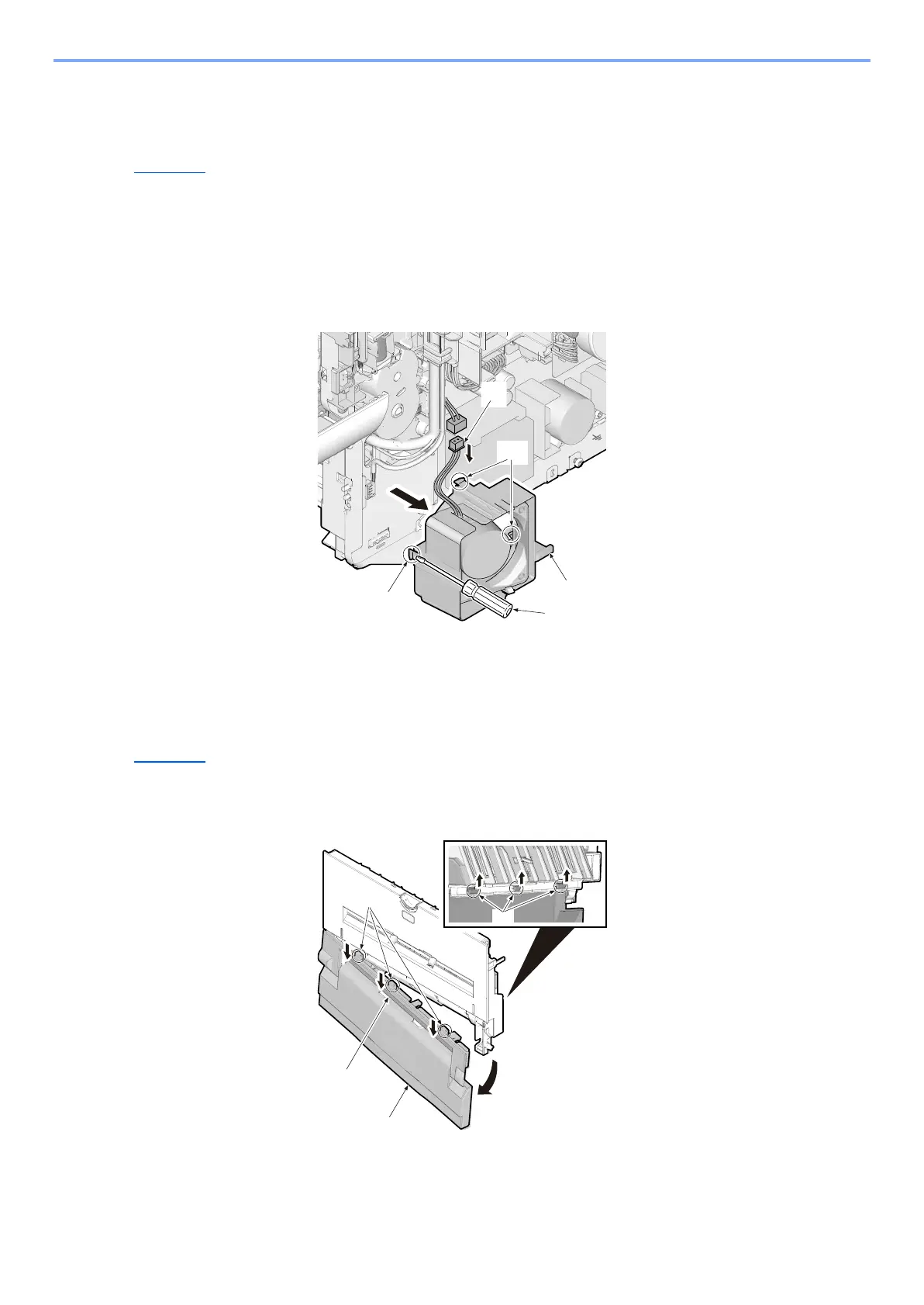 (5-5)Detaching and reattaching the rear fan motor. (100V 60/55/50ppm only)