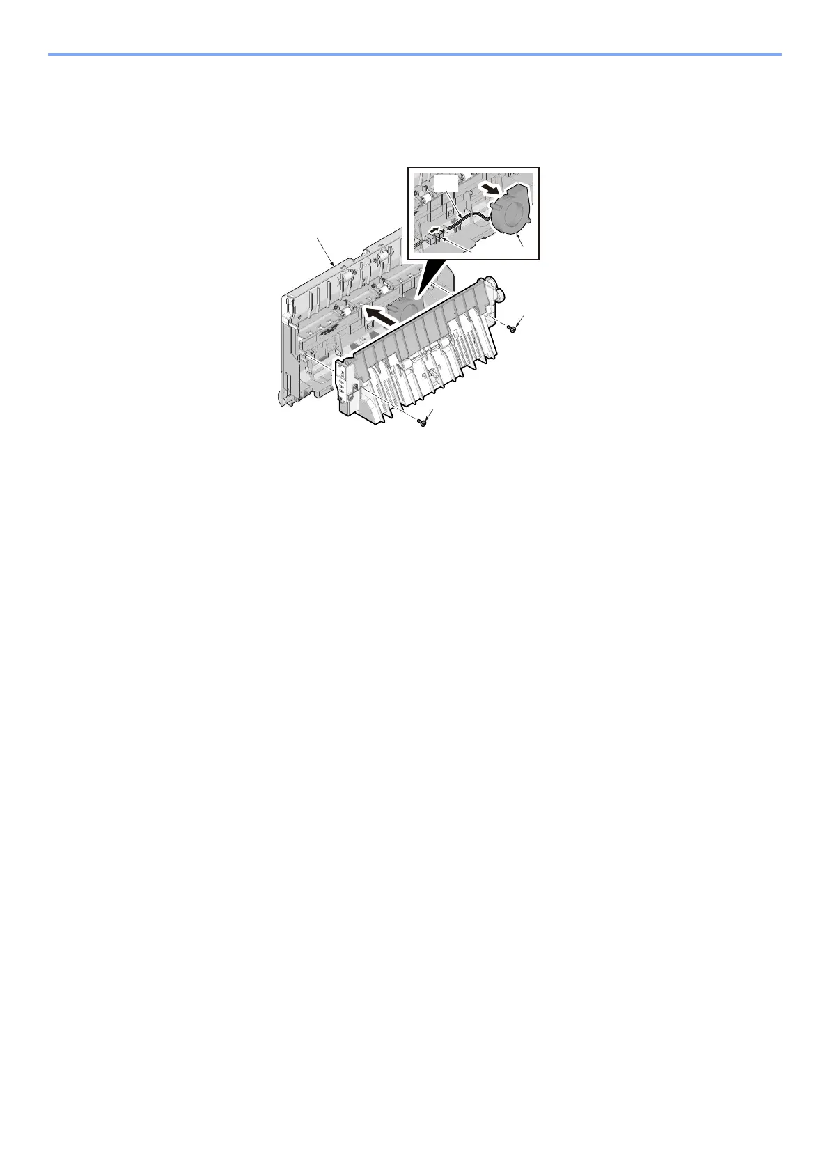 4 Check or replace the rear fan motor and refit all the removed parts.