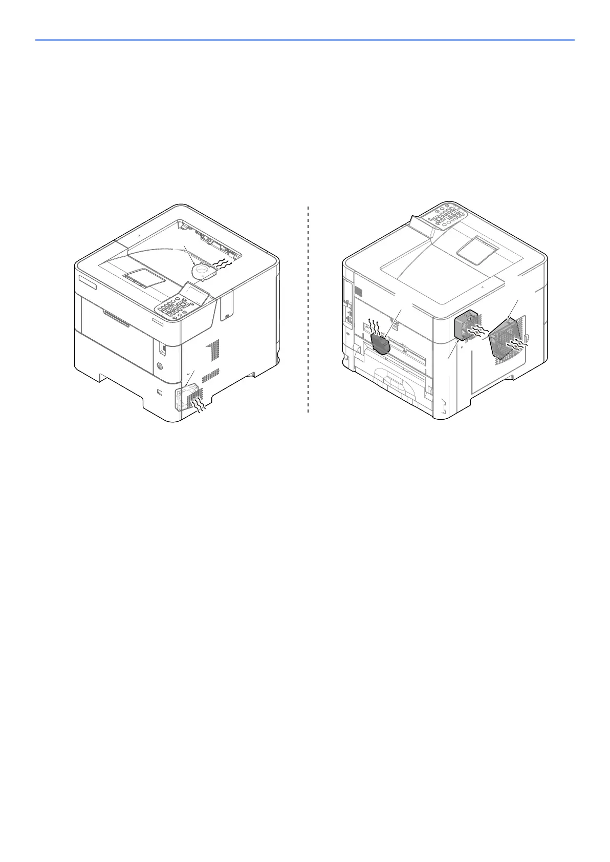 • Developer fan motor (e): Intake (Rating label face inside)
