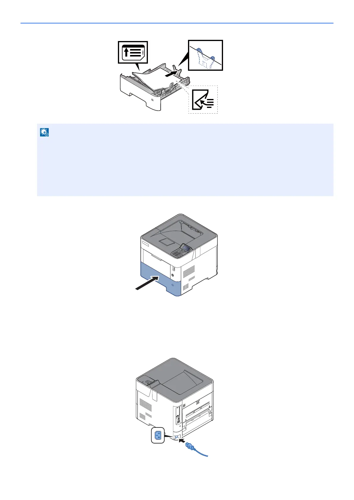 • After removing new paper from its packaging, fan the paper before loading it in the cassette.