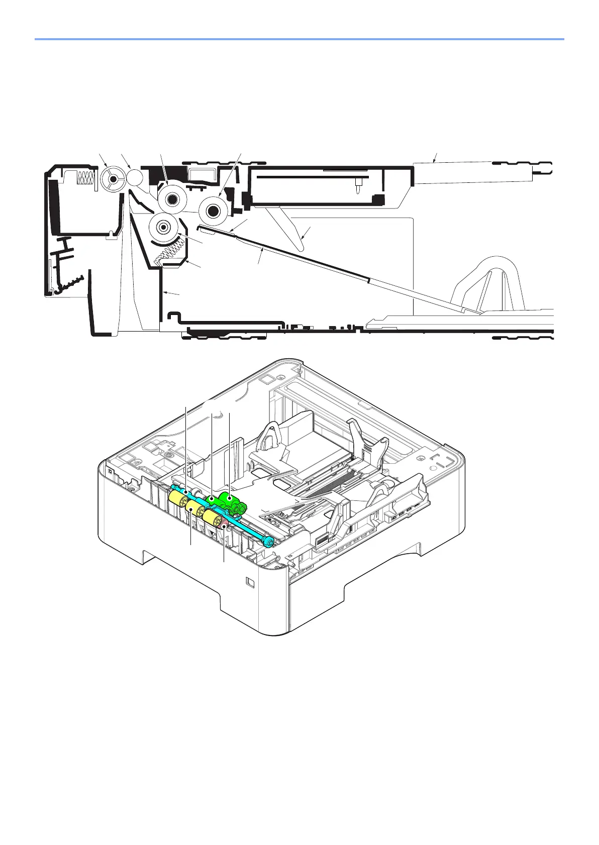 Paper is fed from the paper feeder by the rotation of the pickup roller and paper feed roller. The retard roller
