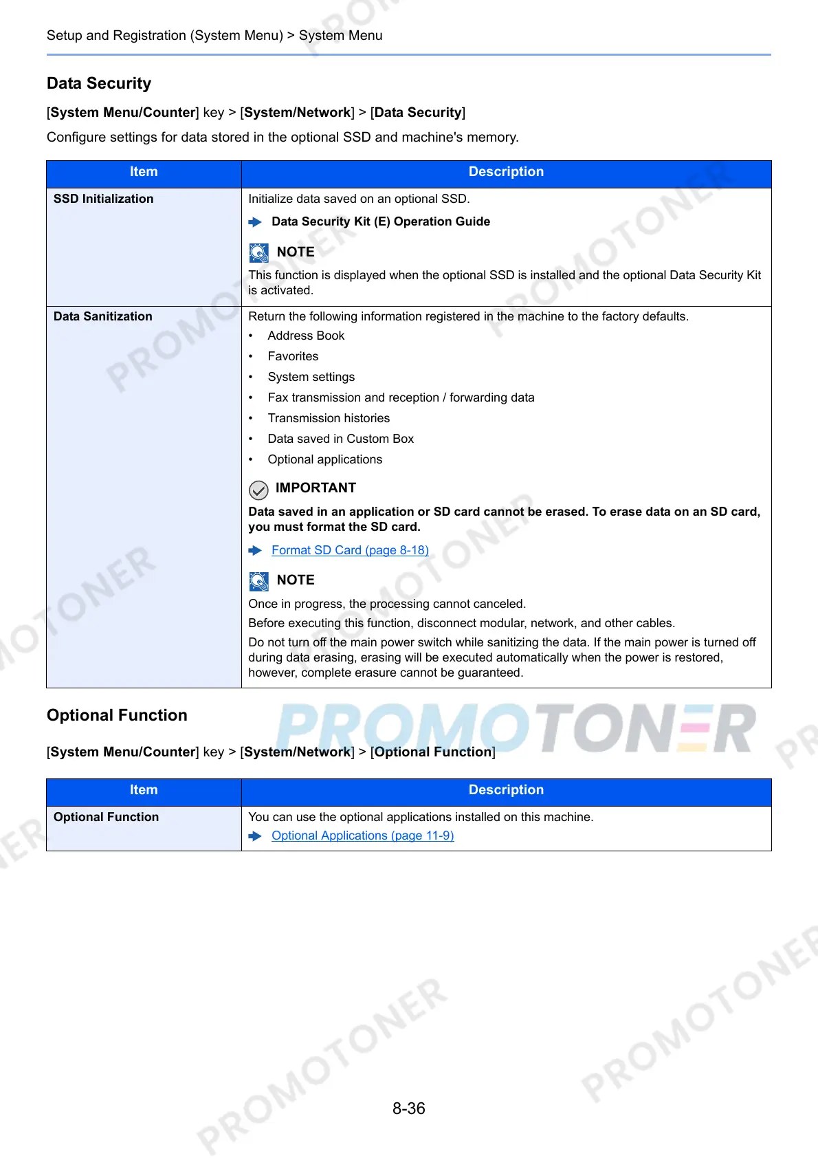 This function is displayed when the optional SSD is installed and the optional Data Security Kit