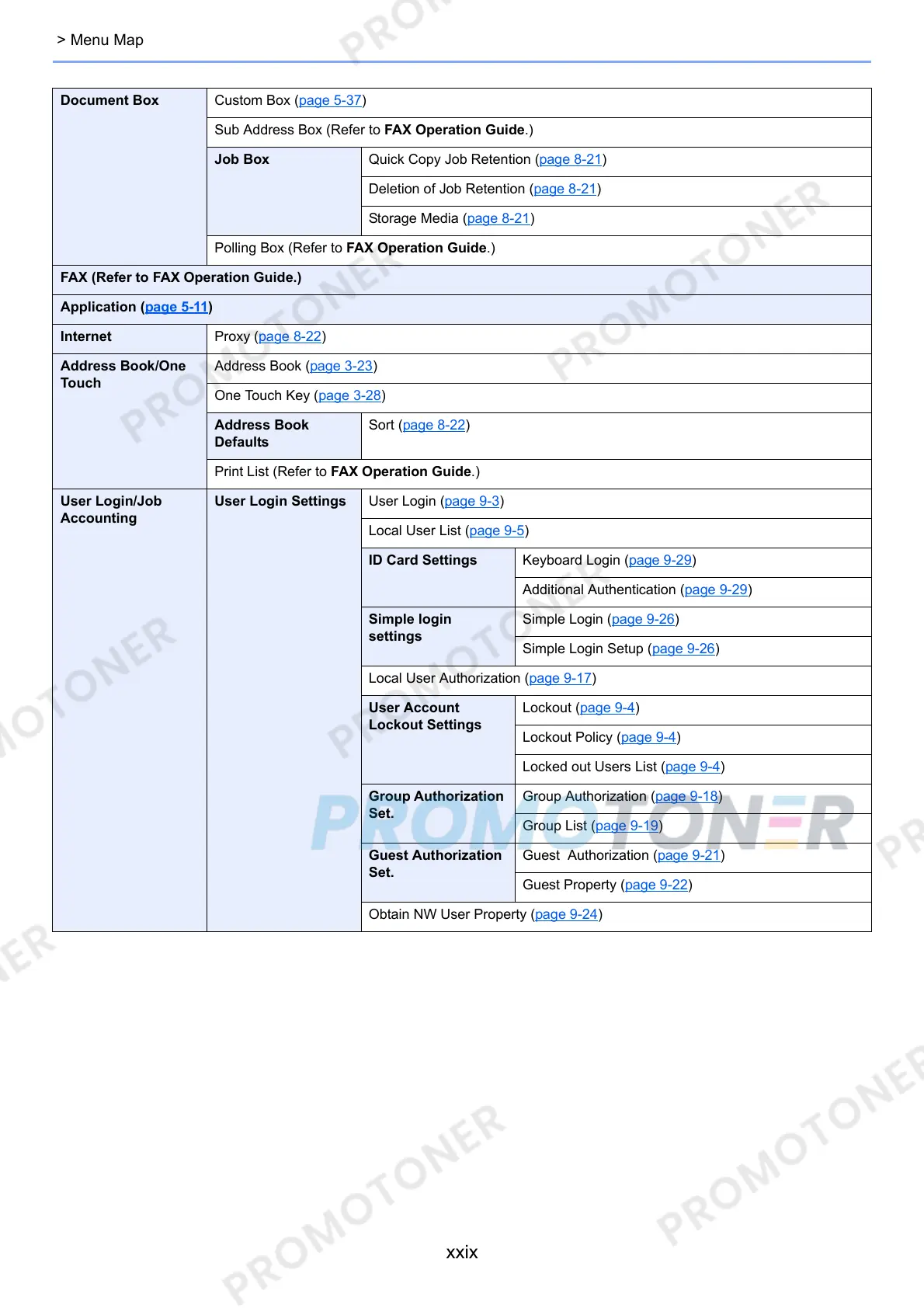 User Login Settings User Login (page 9-3)