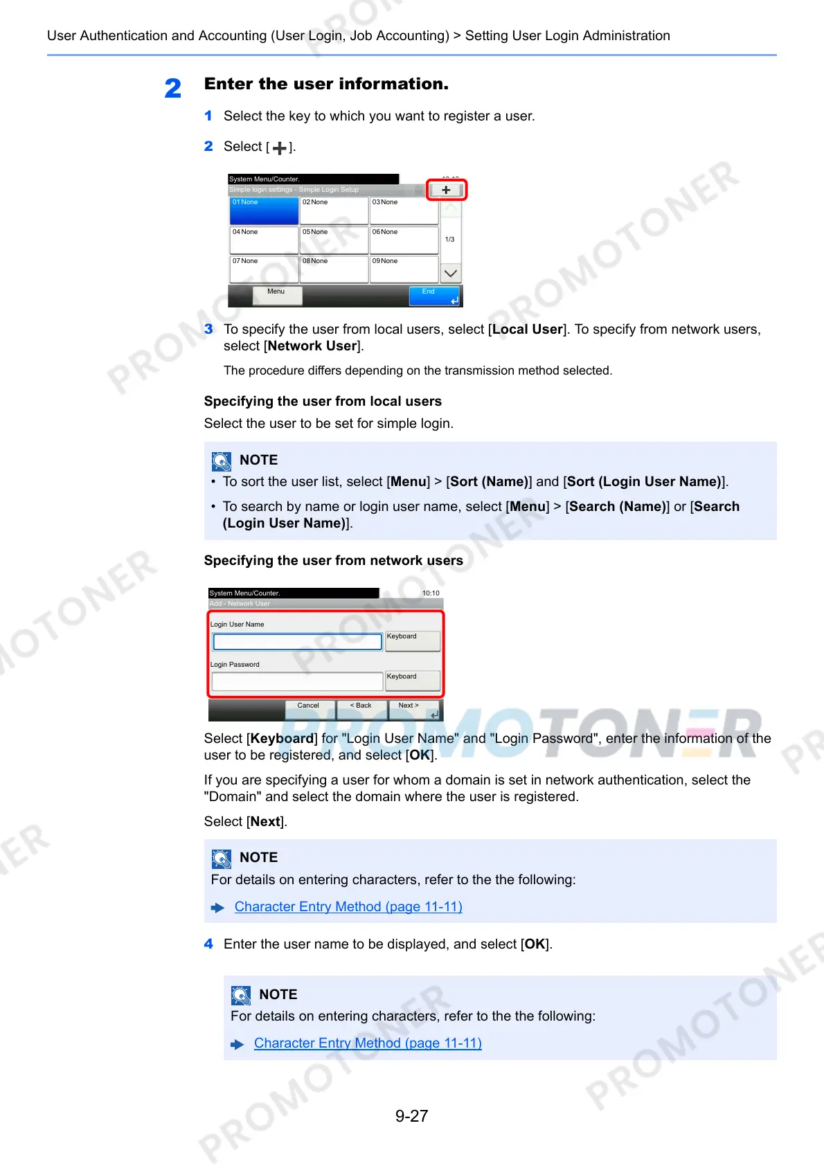 Character Entry Method (page 11-11)