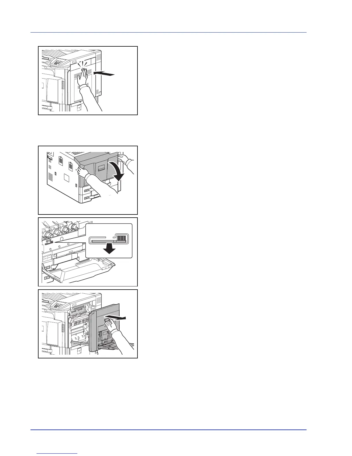 5 Press the specified position of the right cover 1 to close.