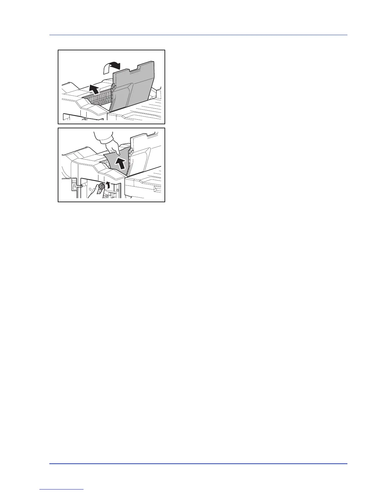 4 Open the top tray and then open feed guide D2.