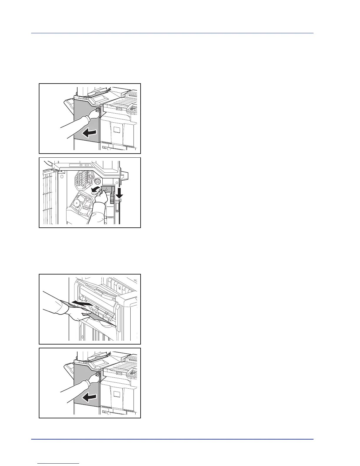 If a paper jam occurs in the optional 4,000-sheet finisher, follow the steps below to remove the jam.