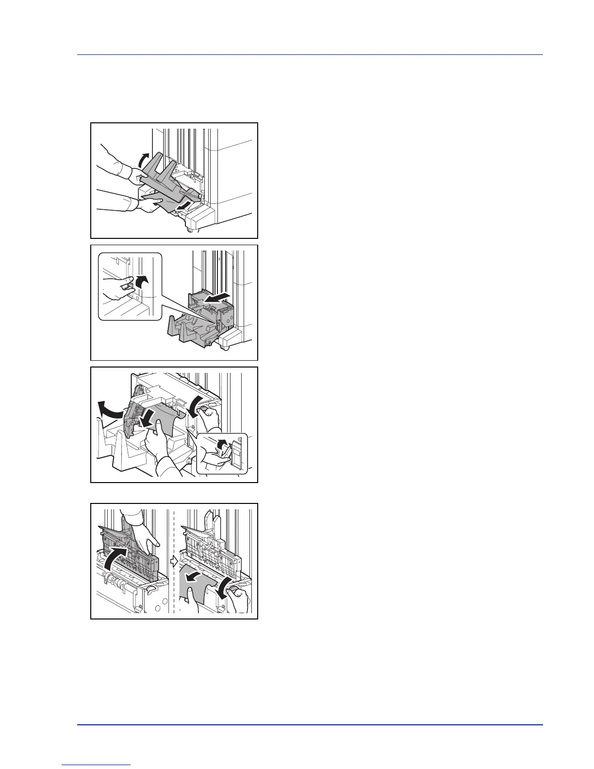 6 Open the folding unit top cover and remove the paper jam.