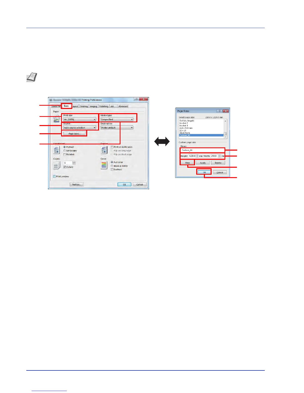 3 Click the Page Sizes... button to register the size.