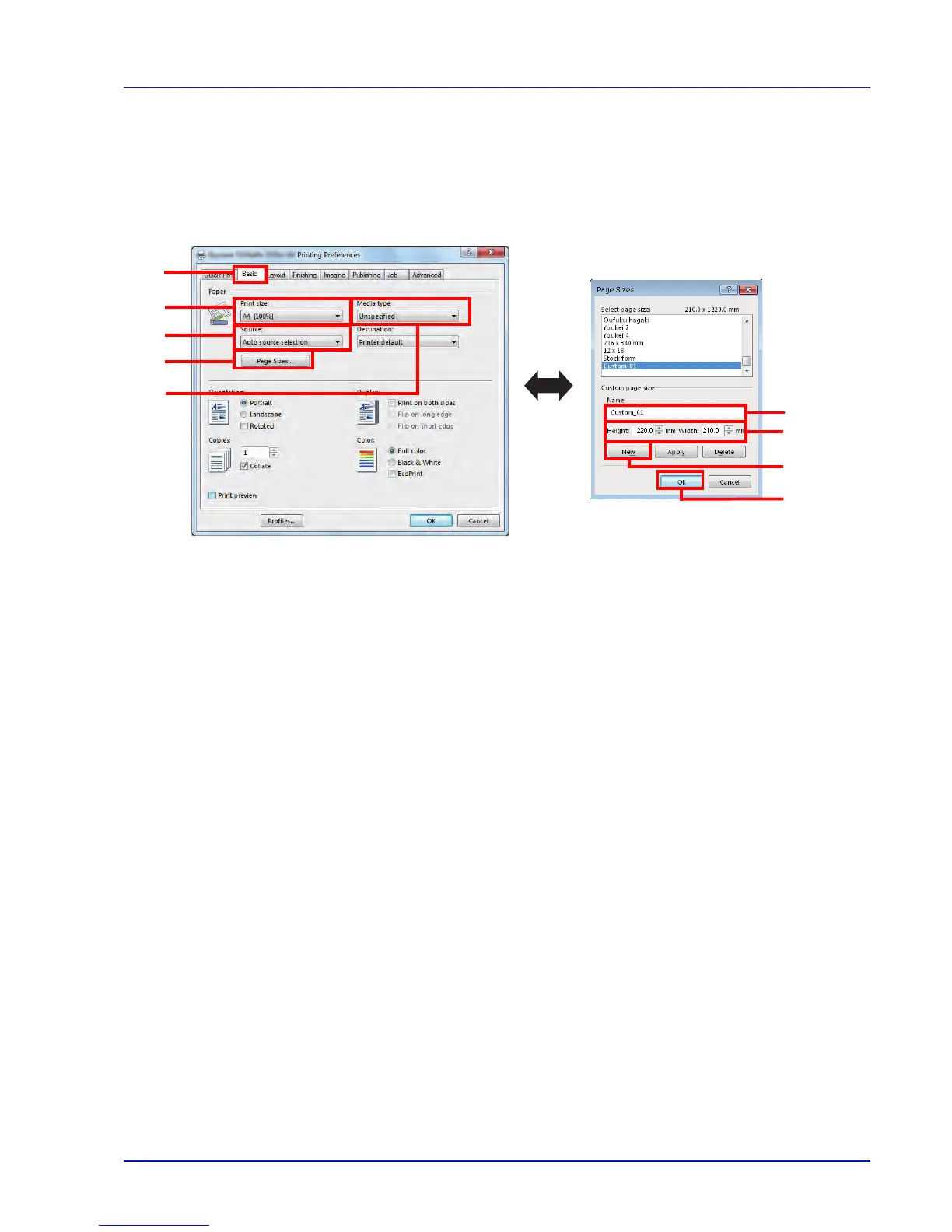 3 Click the Page Sizes... button to register the size.