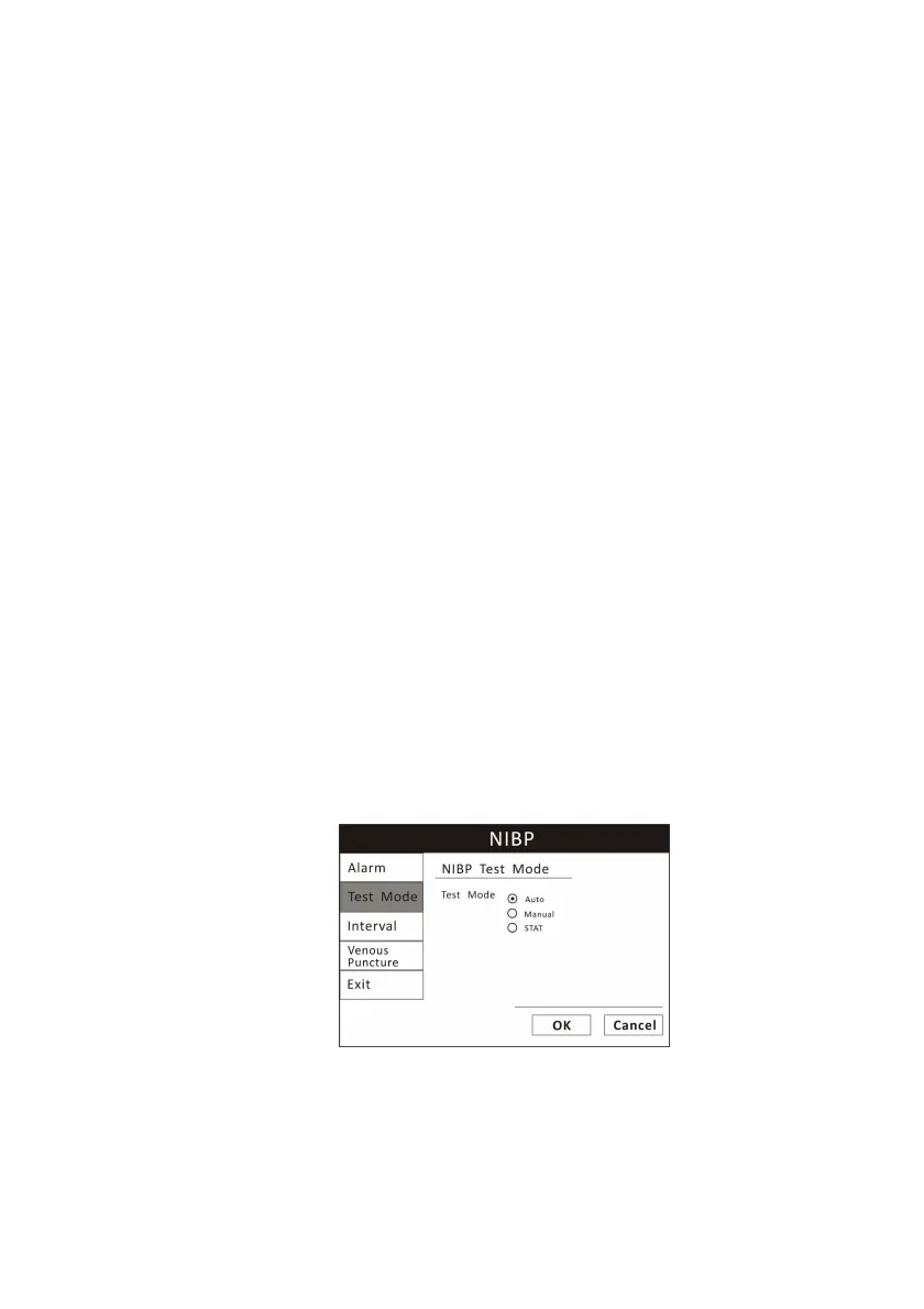 7. Choose the NIBP mode (AUTO, MANUAL, or STAT) that is appropriate for the